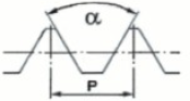 α = 60º dla gwintów metrycznych, UNF oraz NPT